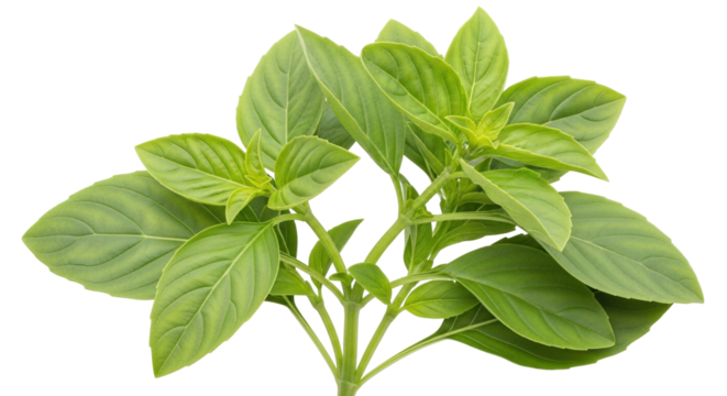 Isolated fragrant culinary sweet basil plant, herb ingredient for cooking, fresh aroma leaf