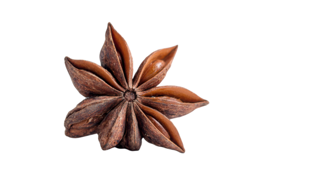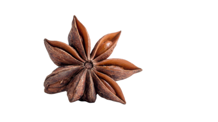 Star anise spice showing textured pods and seeds, a fragrant culinary ingredient for cooking and baking with transparent background