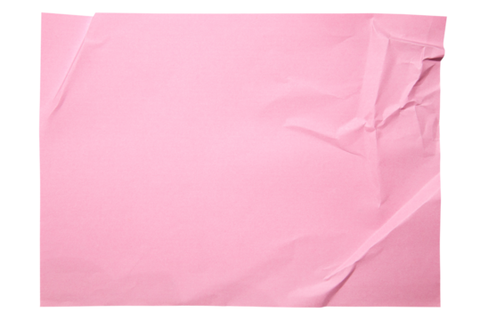 Pink paper wrinkled poster templates, blank paper sheet. Pink paper isolated on transparent background.