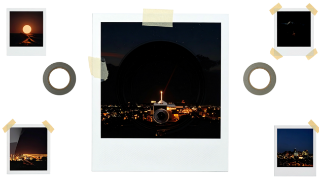 Vintage instant film blank frame with aged paper effect, retro memories concept on transparent background
