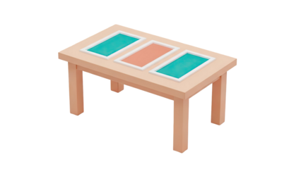 Teal display with metallic silver frame on transparent background