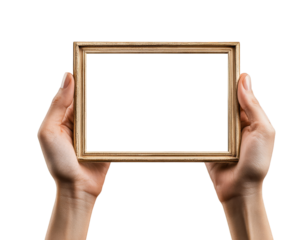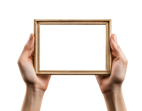 Hand holding blank photo frame, A hand holds a polaroid picture isolated on white or transparent background. PNG