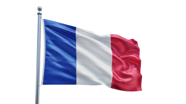 A beautifully rendered depiction of the French flag waving gently in the air, showcasing its vibrant colors