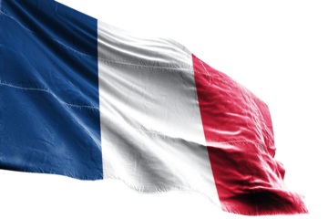 French tricolor flag waving gently in the wind, showcasing crisp fabric and vibrant national colors isolated on white background PNG