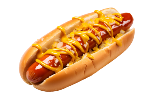 hotdog png, classic street food, grilled sausage, bun, mustard, ketchup, hotdog clipart, fast food, transparent background, culinary illustration, savory snack