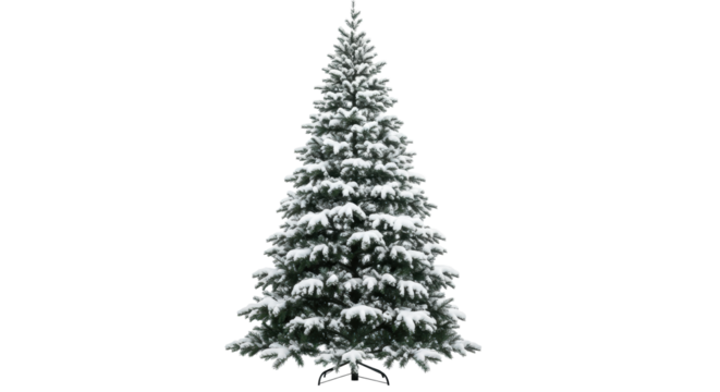Majestic fraser fir tree, fully covered in sharp pristine snow, isolated on a transparent high-key studio background with ultra-sharp focus, emphasizing crisp texture. Concept of idealized winter
