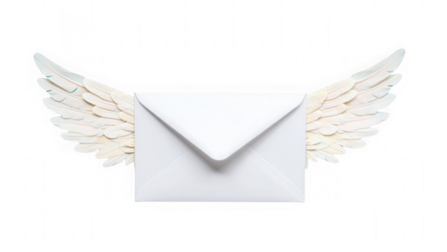 White Envelope with Angel Wings Symbol of Fast Delivery and Important Message