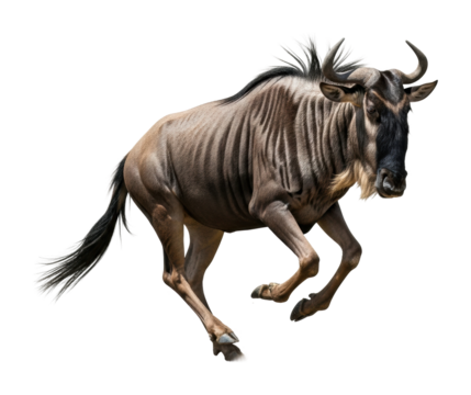 Majestic black horse in full gallop with flowing mane isolated on transparent background