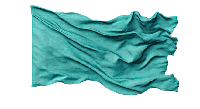 Png of A flowing teal flag fluttering in the wind against a blank backdrop, symbolizing freedom and expression.