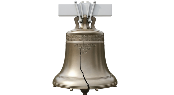 Isolated cracked liberty bell, a symbol of American independence and historical artifact