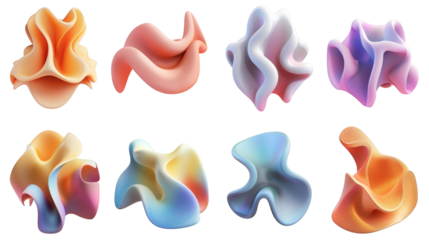 Set of abstract shapes in freeform gradient styles 3D rendered isolated on a white background