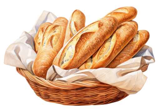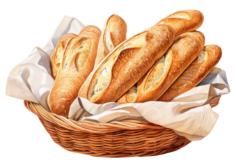 PNG Bread baguette basket food.