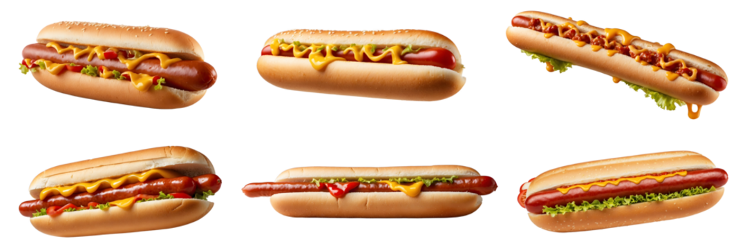 Set of Grilled Perfection Hotdog with Ketchup and Mustard Isolated on Transparent Background with tomato lettuce