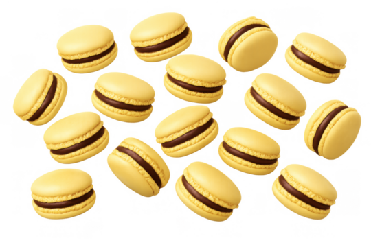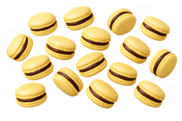 A variety of colorful French macarons isolated on transparent background.