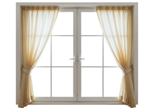 Isolated French doors with light, sheer curtains adding warmth and a cozy feel to a room