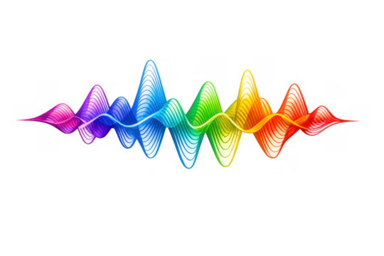 Vibrant gradient audio waveform on transparent background