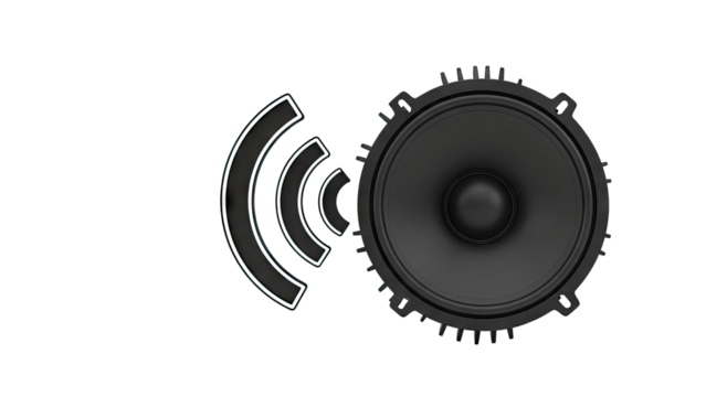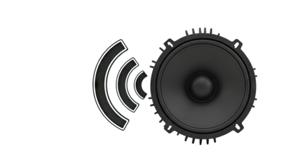 Stylized speaker cones with sound waves on transparent background