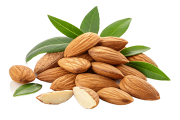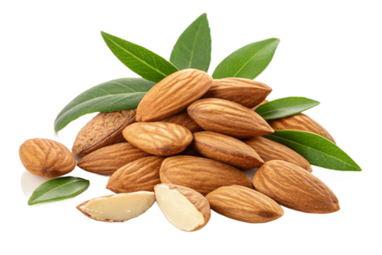 Two whole almonds isolated on transparent background, healthy snack and ingredient