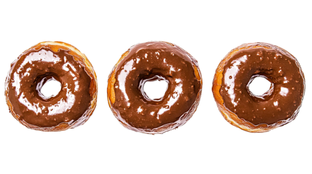 Chocolate Glazed Donuts Arranged on a Transparent Background Generative AI