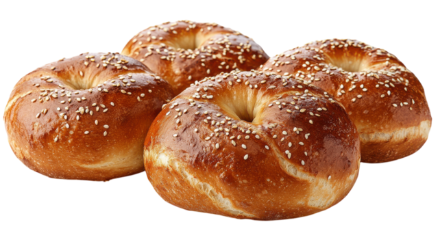 Freshly baked sesame bagels creating a warm, inviting aroma in a cozy bakery