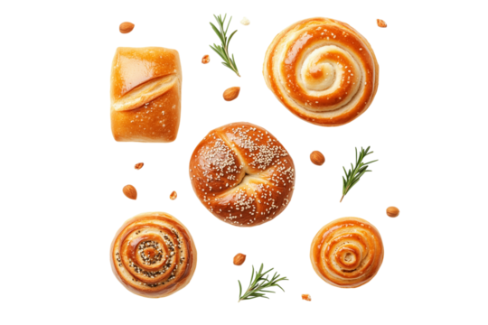 A bunch of different bread on a transparent background