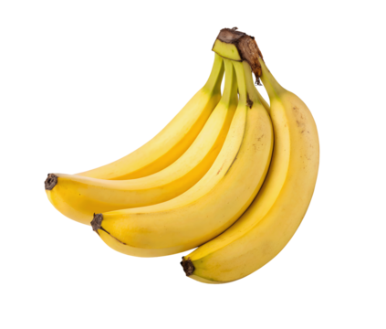 Fresh bananas isolated on a pure white transparent background, perfect for product showcases and fruit-related imagery with a clean, minimalist design.