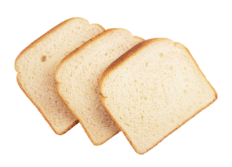 Three sliced ​​pieces of bread isolated on transparent background, top view.
