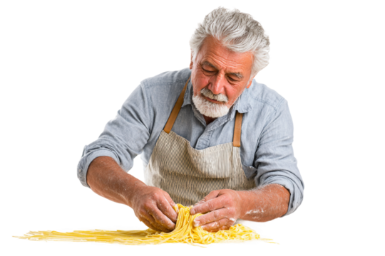 Caucasian woman baking in red apron on transparent background