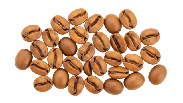 Isolated roasted coffee beans, high-quality Arabica, natural fresh ingredients for delicious drink