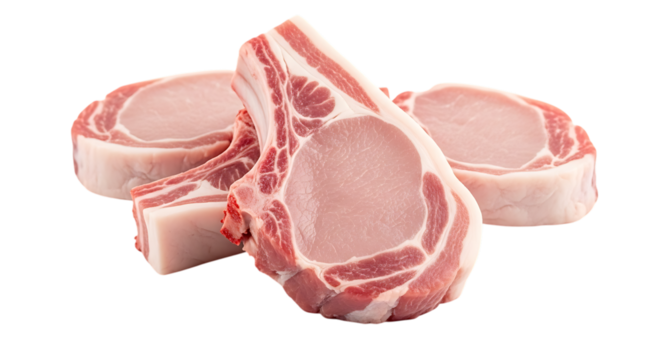 Fresh raw pork chops isolated on transparent background, showcasing the cut of meat, ingredient for delicious meal preparation, and a source of protein for healthy nutrition