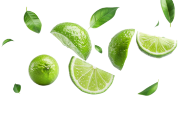 lime fruit set png. lime isolated. Fresh lime slices falling down PNG, vibrant green citrus pieces in mid-air, perfect for organic food, tropical drinks, and healthy lifestyle visuals