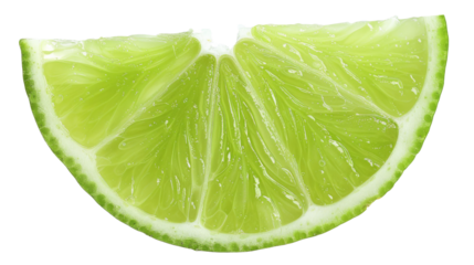 A single, vibrant green lime peel, elegantly curled into a spiral, showcasing its fresh texture and zest, isolated on transparent background