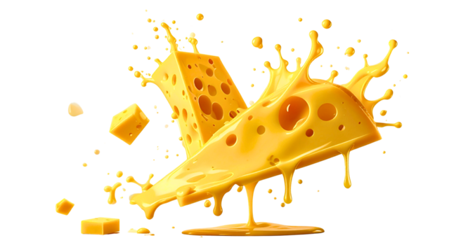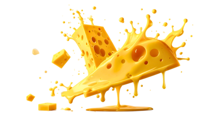 Hard pale yellow Parmesan cheese wedge, granular, with knife cutting shards on transparent background with copy space, shadowless studio light, gourmet food preparation concept.