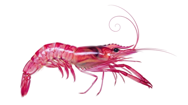 Close up of a fresh and delicious shrimp isolated on transparent background, ready to be cooked and served as a gourmet dish