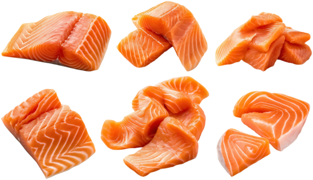 Fresh raw salmon fillet sashimi sushi grade orange sea on transparent background