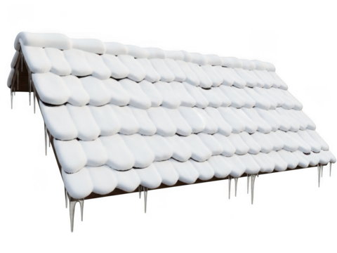 Icy rooftop covered in fresh snow with dripping icicles during winter season transparent background