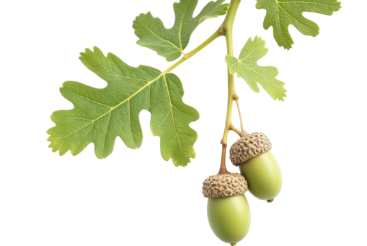 Green Acorns on Oak Branch with Leaves