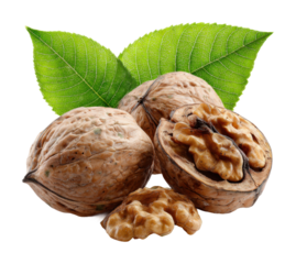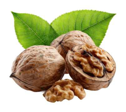 Harvesting walnuts fresh nuts on leaves kitchen natural isolated on transparent background