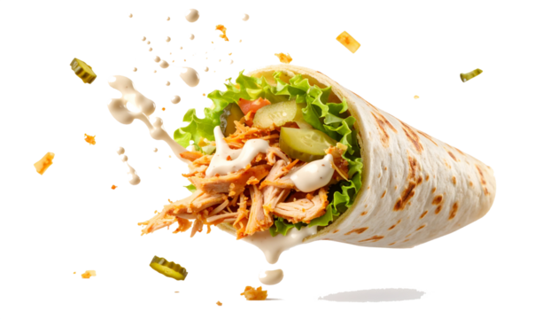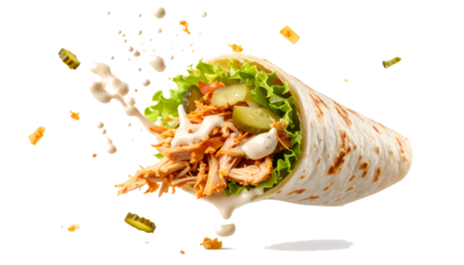Chicken Shawarma Wrap isolated on transparent or white background, png