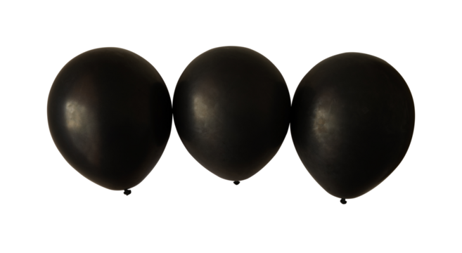 Black glossy floating helium balloon reflecting light, bringing concepts of celebration, mourning, or special events, transparent background