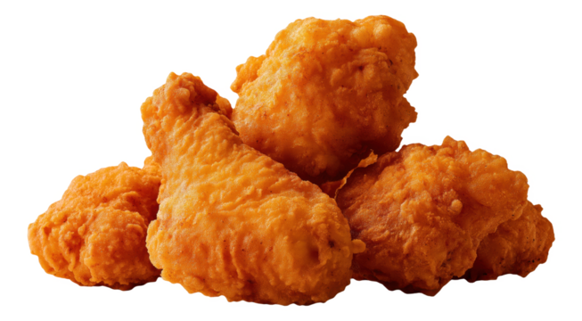 Crispy Delights: A Pile of Golden Fried Chicken on a Clean Canvas on a Clear PNG or White Background.