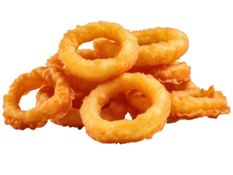 Crispy Golden Fried Onion Rings, isolated on white transparent background