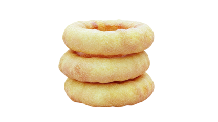 Three Golden Brown Crispy Onion Rings Stacked Together fried food isolated on a transparent background