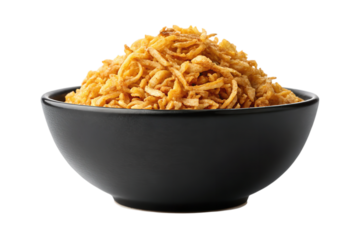 Indian Yellow Rice Pilaf with Fried Onions and Parsley Garnish on White Plate indian rice biryani isolated on a transparent background