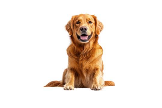 Golden Retriever Posing: A regal golden retriever sits confidently, showcasing its beautiful, silky coat and friendly nature, radiating charm and a heartwarming presence.