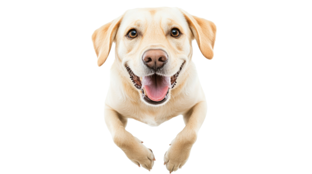 Happy labrador retriever jumping with joy against a white background in a playful moment,cut out
