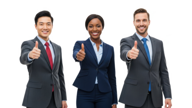 Three business professionals giving thumbs up isolated on transparent background