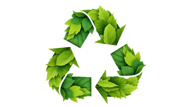 Sustainable green recycling symbol with transparent background