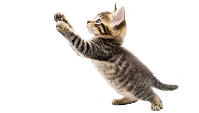 A playful kitten batting at a toy, full of energy and curiosity,Transparent background, PNG file