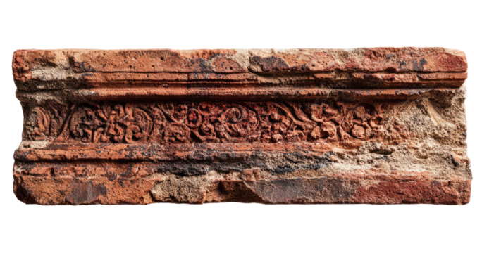 Ancient weathered terracotta pot with a decorative floral frieze.